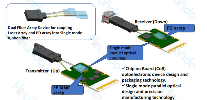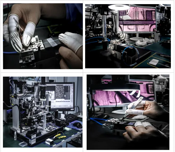 激光器(VCSEL/DFB/EML)或光电探测器(PD)需要通过FA与单模/多模光纤精准对接,实现光信号低损耗传输。