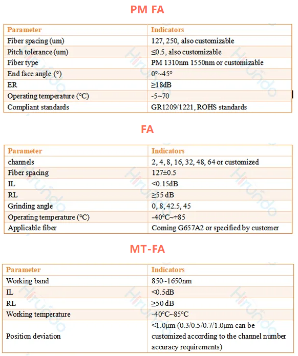 FA采用微米级V型槽或硅基精密波导,在有限空间内实现多光纤排布,适配QSFP+/OSFP等紧凑型封装。