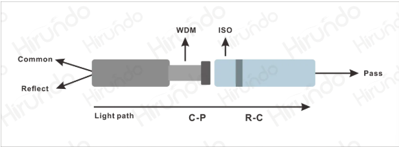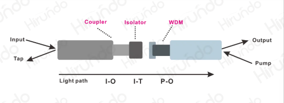 Hybrid混合器件是指将EDFA中最重要的五大功能器件: 光隔离器(Isolator)、波分复用器(WDM)、增益平坦滤波器(GFF)、耦合器(Coupler)、TAP PD(分光探测器),集成了两种或以上的多种组合功能于一个器件中,实现相同功能前提下大大的缩小了器件的尺寸以及降低了成本。