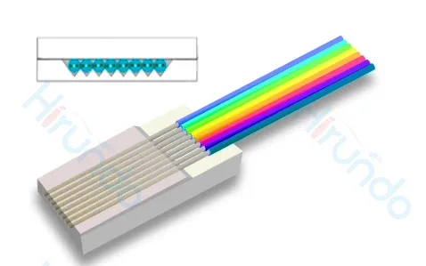 通过将光纤阵列研磨成特定角度(如 42.5°)实现端面全反射,使用低损耗的 MT 插芯,能够给光收发模块提供紧凑的并行连接方案,如 100G PSM4 连接到部端口,满足 AI 算力对高速数据传输的要求。
