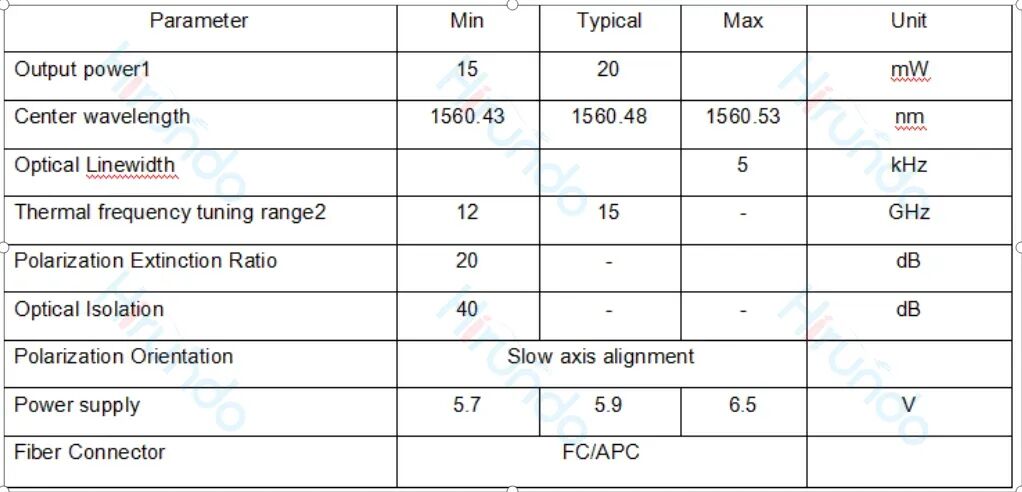 ✴ 在寿命和温度范围内具有无与伦比的波长稳定性华瑞高能够提供的产品参数如下所示: