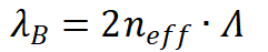 那么我们如何得到布拉格波长的值呢?我们可以通过动量与能量守恒定理进行推导。设布拉格波长为(即反射光波长),根据能量守恒: